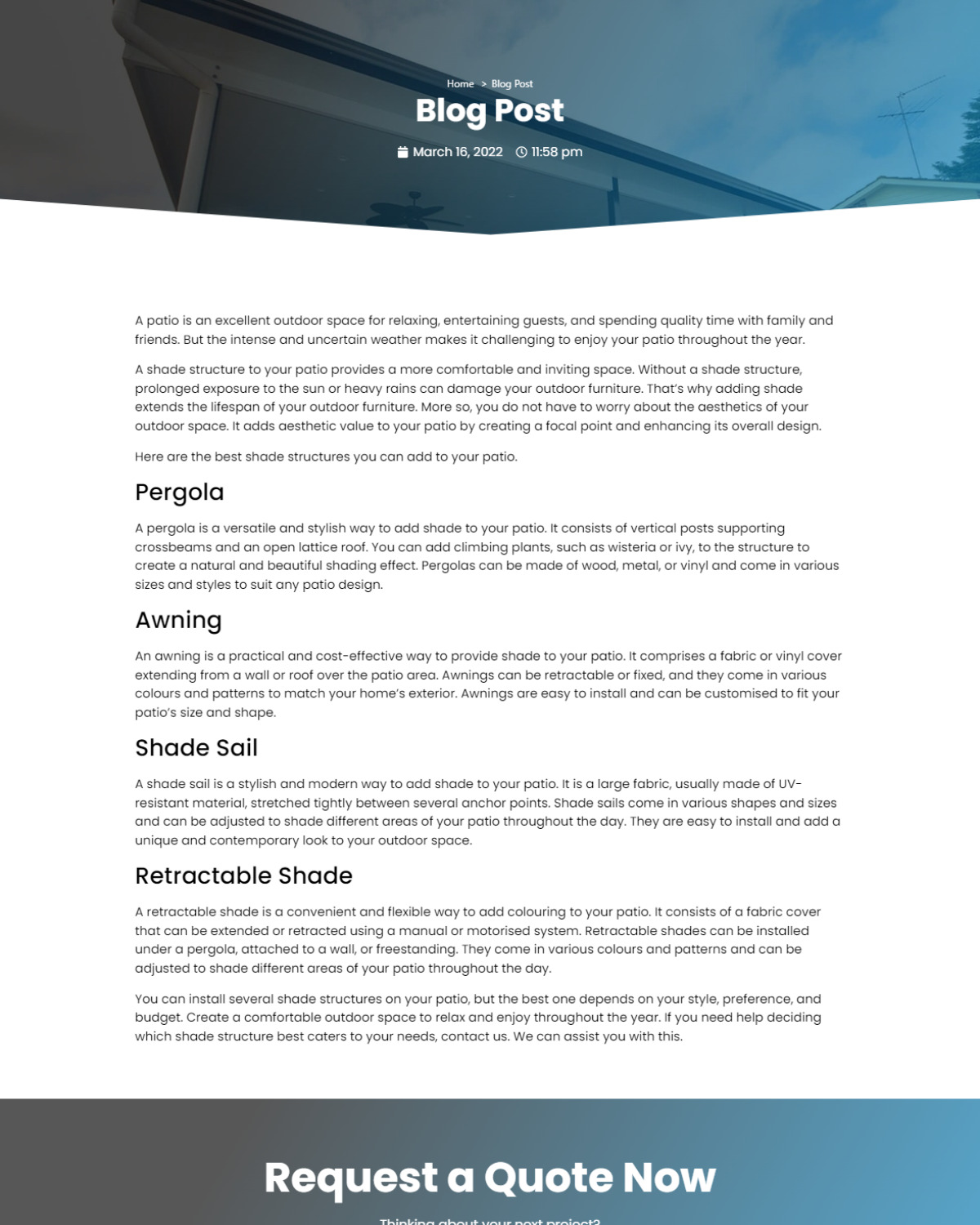 Every aspect of your outdoor shade is designed to bring you comfort and joy.